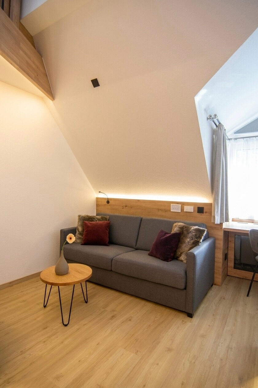 Es besteht die Möglichkeit das Sofa als Sofabett für 2 Personen zu nutzen. Die Suite verfügt dadurch über Schlafmöglichkeiten für bis zu 5 Personen.